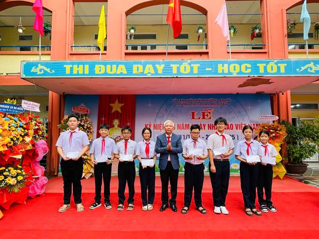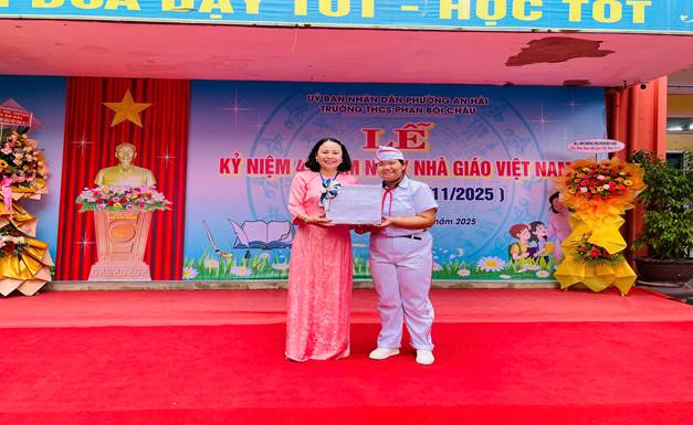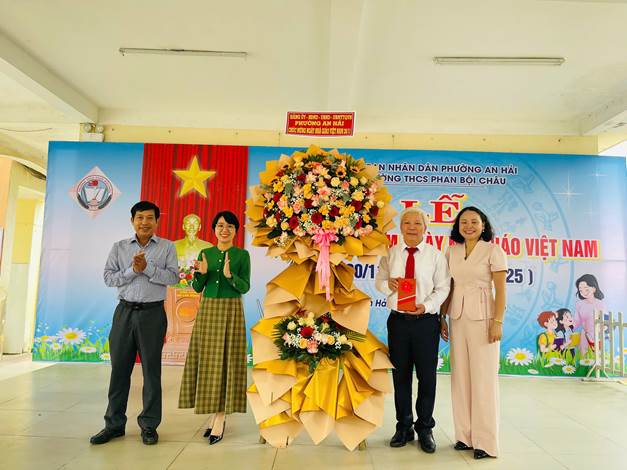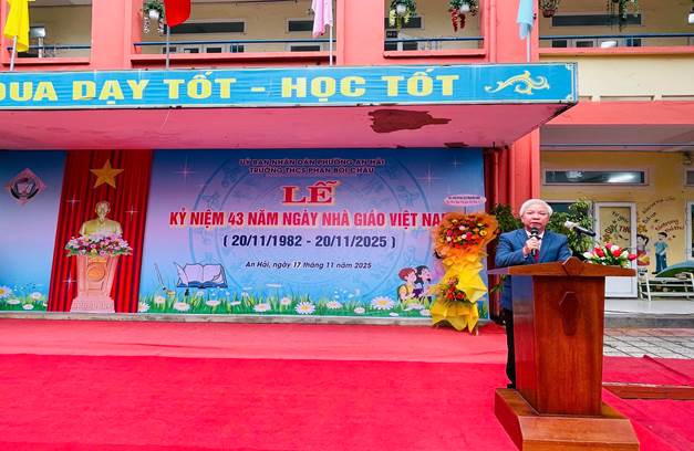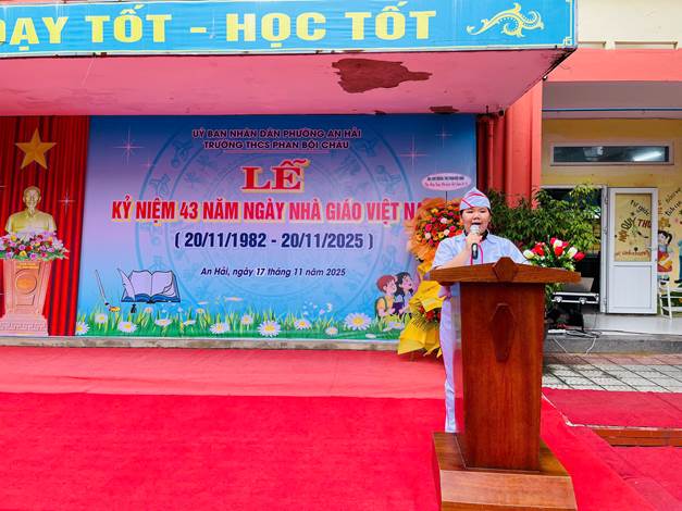 Tháng 11 lại về – tháng của yêu thương và tri ân gửi đến các thầy cô giáo, đồng thời ghi nhận những đóng góp to lớn của đội ngũ nhà giáo trong sự nghiệp trồng người. Sáng thứ hai ngày 17/11/2025 trường THCS Phan Bội Châu đã long trọng tổ chức lễ kỷ niệm 43 năm ngày Nhà giáo Việt Nam (20/11/1982 – 20/11/2025). Đây cũng là dịp để học trò bày tỏ lòng biết ơn, tri ân sâu sắc đến thầy cô giáo đã tận tâm dìu dắt và truyền dạy tri thức trên hành trình trưởng thành của bao thế hệ học trò. Nhân dịp này, nhà trường đã tổ chức buổi gặp mặt thân mật kỷ niệm 43 năm ngày Nhà giáo Việt Nam. Buổi gặp mặt diễn ra trong không khí thân tình với sự tham dự của tập thể HĐSP nhà trường cùng các thầy cô giáo nguyên là cán bộ quản lý, giáo viên, nhân viên đã nghỉ hưu và chuyển công tác; các cấp lãnh đạo;đơn vị bộ đội kết nghĩa; ban đại diện cha mẹ học sinh nhà trường và ban đại diện 24 lớp cùng hơn 920 em học sinh toàn trường tham dự đông đủ. Nhà trường vinh dự đón nhận lời chúc mừng và lẵng hoa tươi thắm từ Đảng ủy, HĐND, UBND, UBMTTQVN Phường An Hải, Phòng Kinh tế hạ tầng đô thị; Trung tâm cung ứng dịch vụ sự nghiệp công; Trạm y tế phường; Ban đại diện Cha mẹ học sinh; Đơn vị bộ đội kết nghĩa Hải đội 132 Vùng III - HQ; Ngân hàng Sacombank; Ngân hàng Vietinbank sông Hàn. Qua đó, thể hiện sự quan tâm sâu sắc và đồng hành của chính quyền cũng như các cơ quan, đoàn thể và cha mẹ học sinh dành cho sự nghiệp giáo dục. Trong không khí trang nghiêm, ấm áp tình thầy trò, thầy giáo Trịnh Quang Lộc – Bí thư chi bộ - Hiệu trưởng nhà trường phát biểu chào mừng kỷ niệm ngày Nhà giáo Việt Nam 20/11, nhằm ôn lại ý nghĩa truyền thống tôn vinh nhà giáo, ghi nhận những thành tích đáng tự hào mà tập thể thầy và trò nhà trường đã đạt được trong thời gian qua. Đồng thời, thay mặt HĐSP nhà trường, thầy giáo Trịnh Quang Lộc cũng đã gửi những lời chúc tốt đẹp nhất đến toàn thể quý thầy cô và các em học sinh hoàn thành xuất sắc nhiệm vụ năm học 2025-2026. Trong không khí sôi nổi thi đua chào mừng ngày Nhà giáo Việt Nam 20/11: nhà trường khen thưởng các tập thể lớp và cá nhân đạt nhiều thành tích xuất sắc trong phong trào giành nhiêu “Tiết học tốt, tuần học tốt, bông hoa điểm 9 diểm 10”, “thiết kế video giới thiệu về trường THCS Phan Bội Châu”, video “Tri ân thầy cô”, trang trí “Kệ sách thân thiện”,” và cuộc thi “Tỏa sáng tài năng Phan Bội Châu”. Những thành tích xuất sắc trong các phong trào thi đua là minh chứng cho sự cố gắng, tinh thần đoàn kết và nỗ lực của cá nhân và tập thể các lớp, là món quà ý nghĩa gửi đến các thầy cô nhân dịp 20/11. “Tiên học lễ, hậu học văn”, thầy cô không chỉ là người truyền dạy kiến thức mà còn dạy cho học trò những điều hay lẽ phải. Kính chúc các thầy cô giáo – những người gieo mầm xanh cho tương lai đất nước sẽ tiếp tục cống hiến, luôn vững tâm, nhiệt huyết và thắp sáng ước mơ cho học trò trên hành trình chinh phục tri thức.