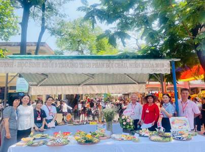 Ngay từ sáng sớm, sân trường đã trở nên vô cùng náo nhiệt với không gian đầy màu sắc rực rỡ, các gian hàng ẩm thực của tất cả các lớp được trang trí mang đậm dấu ấn bản sắc văn hoá dân tộc.