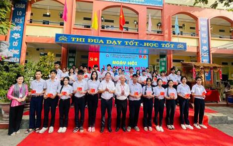 Sau phần phát biểu khai mạc là nghi thức kết nạp Đoàn viên mới cho các em học sinh lớp 9.