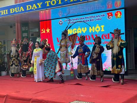 Ngoài ra còn có các tiết mục văn nghệ do đội văn nghệ nhà trường biểu diễn. Đặc biệt, các em còn được xem nghệ thuật hát Tuồng - một loại hình sân khấu truyền thống đặc sắc của dân tộc, do đoàn nghệ thuật nhà hát tuồng Nguyễn Hiển Dĩnh thành phố Đà Nẵng biểu diễn. Những trang phục đặc trưng với nhiều màu sắc rực rỡ, cách hoá trang ấn tượng cùng lối diễn xuất đầy biểu cảm đã mang đến cho các em những trải nghiệm mới mẻ, giúp các em hiểu hơn về giá trị văn hoá nghệ thuật truyền thống của dân tộc.